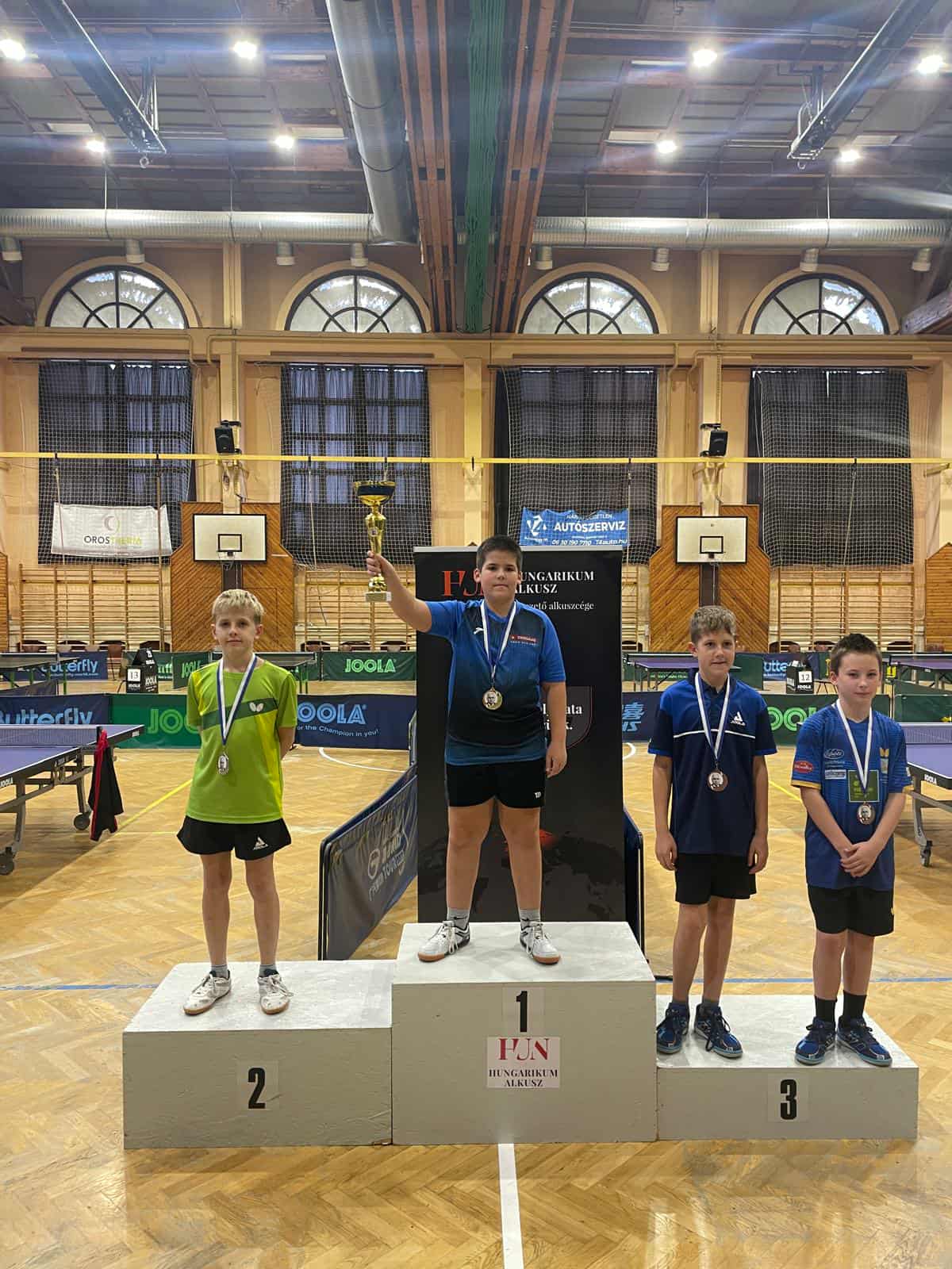 Kiss Péter esélyesként indult és fokozatosan egyre jobb játékkal rukkolt elő saját korosztályában. A döntőben is uralta a játékot és magabiztosan nyerte az U11-et. Az U13-ban a négy közé jutásért az elején jól kezdett viszont az első játszmát 9:4-ről fordítottam meg ellenfele, nem kevés szerencsés labda menettel. Utána összeszedte magát és szoros játszmákban, jól versenyezve, 3:1 nyerni tudott.