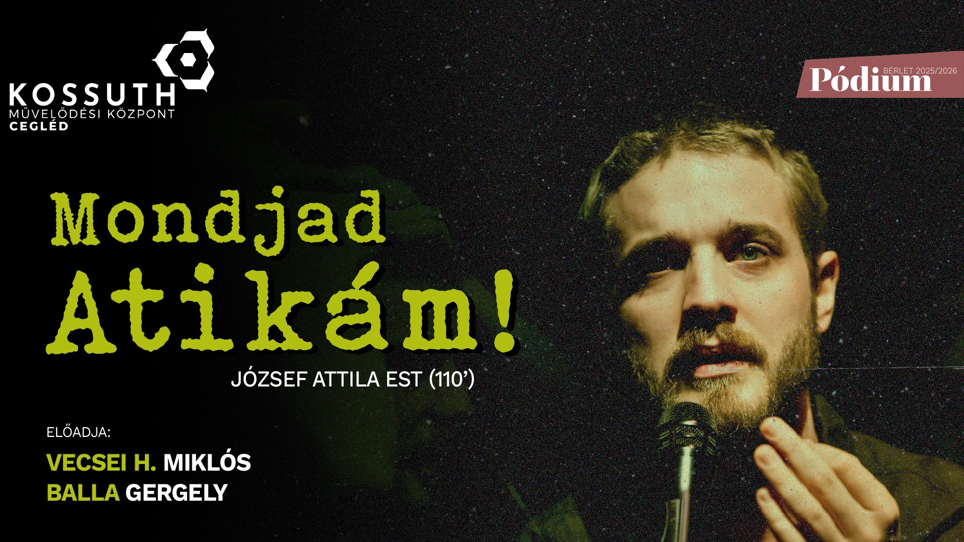József Attila-est (110′) Pódium bérlet I. 2025. DECEMBER 03. SZERDA 19:00 KAMARATEREM