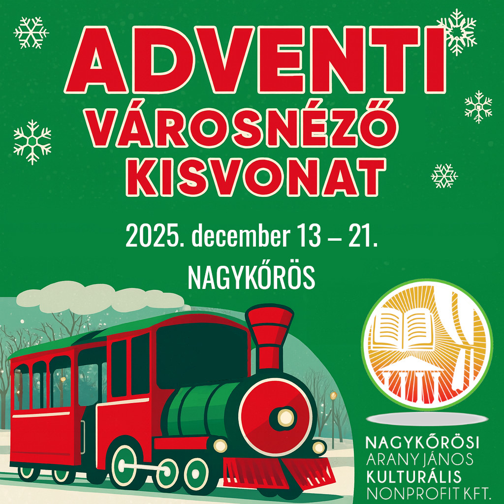Adventi városnéző kisvonat a Szeretet terén Nagykőrösön Adventi városnéző kisvonat a Szeretet terén Gyere el velünk egy különleges utazásra, és nézd meg Nagykőröst úgy, ahogy csak ilyenkor lehet: fényárban, karácsonyi köntösben, és ha úgy adódik, mesés hóesésben!