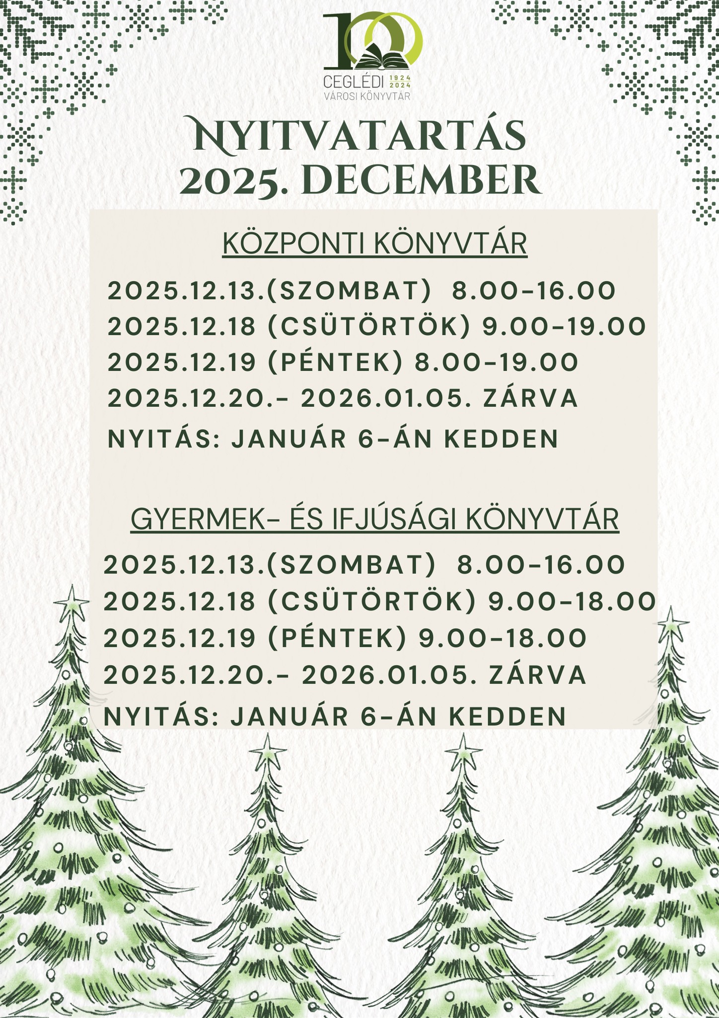 Az alábbi nyitvatartással várják az olvasókat a Ceglédi Városi Könyvtárban: