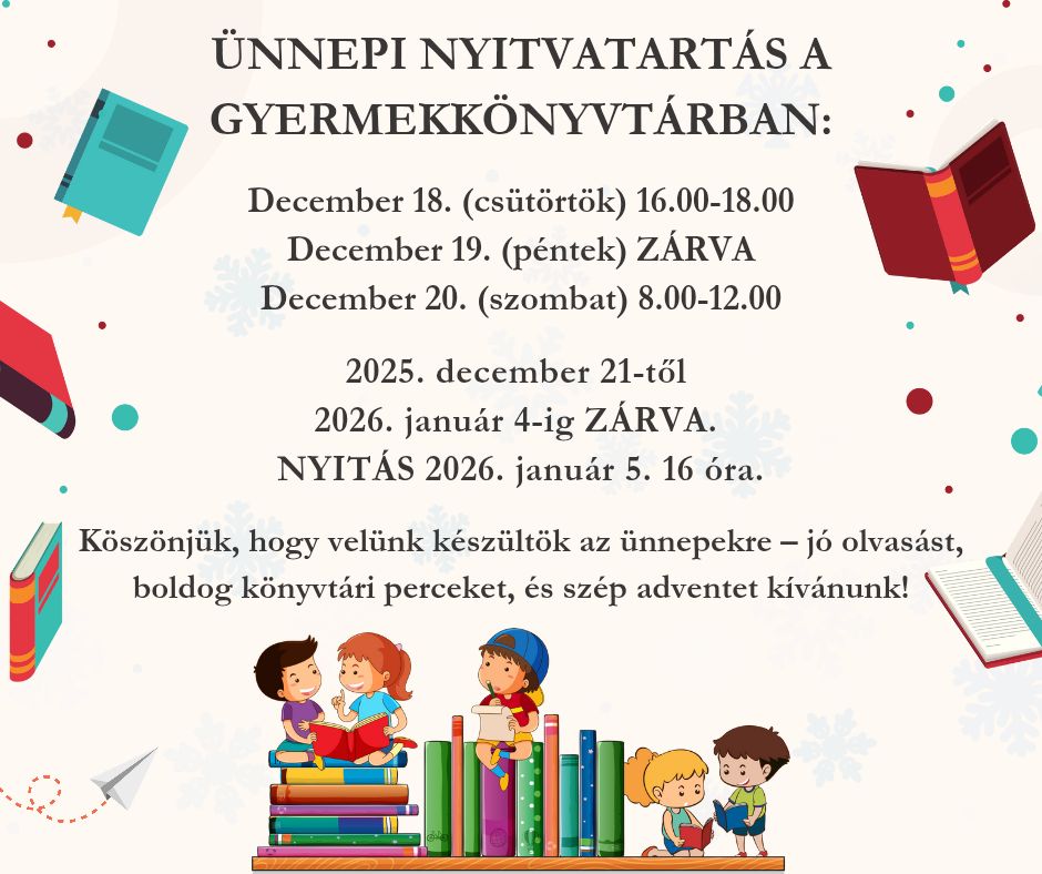 Ünnepi nyitvatartás a Nagykőrösi Gyermekkönyvtárban