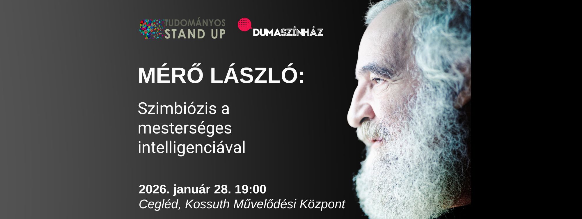 Január 28-án 19 órakor Dr. Mérő László előadása „Szimbiózis a mesterséges intelligenciával” címmel Cegléden, a Kossuth Művelődési Központban!