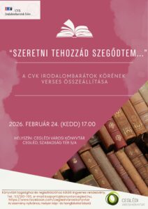 „Szeretni tehozzád szegődtem…” Szeretettel várunk minden kedves érdeklődőt a CVK Irodalombarátok Köre előadására. „Szeretni tehozzád szegődtem…”