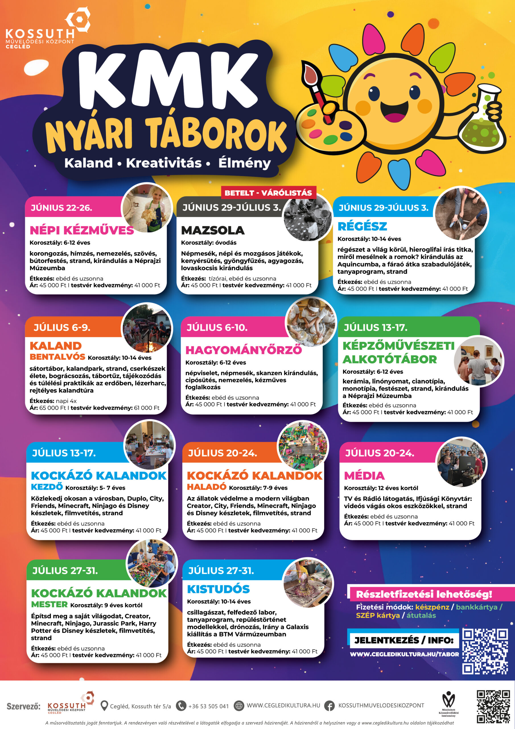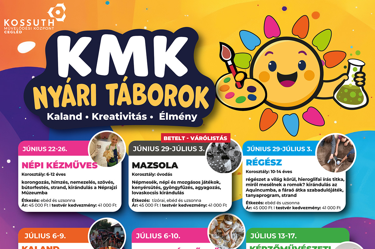 A Kossuth Művelődési Központ ismét számos táborral várja a gyerekeket a nyári szünet folyamán, részletek a képen: